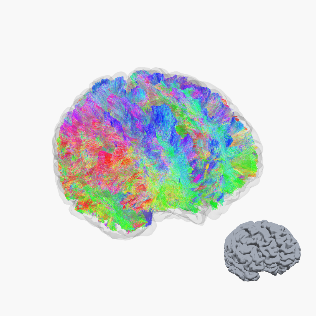 Die strukturelle MRT und Traktographie machen die feinen Nervenfaserbahnen (weiße Substanz) sichtbar, die für eine gesunde Funktion des Gehirns entscheidend sind.